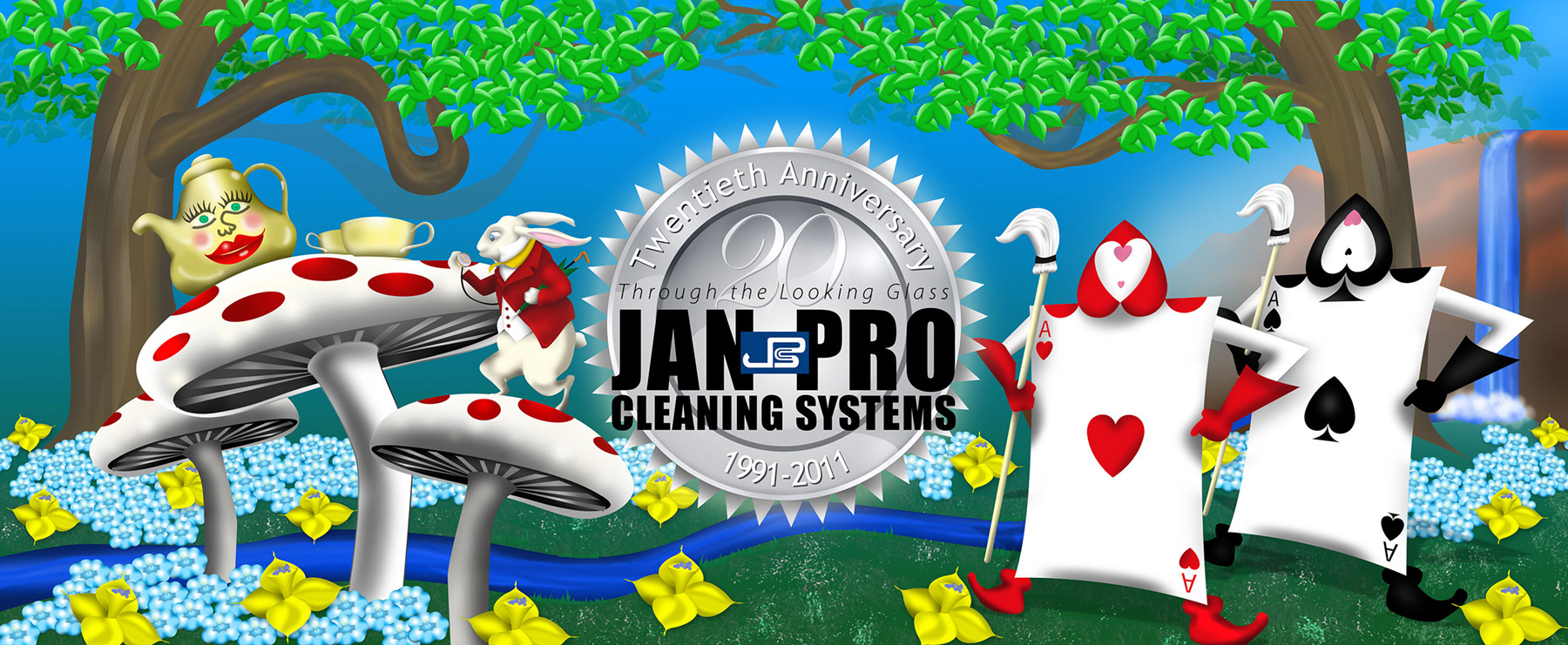 Jan-Pro cleaning systems celebrated its 20th anniversary in 2011 and I was tasked with providing a medallion for use in promoting the anniversary. I also was asked to create a backdrop for a gala based on an Alice in Wonderland theme.